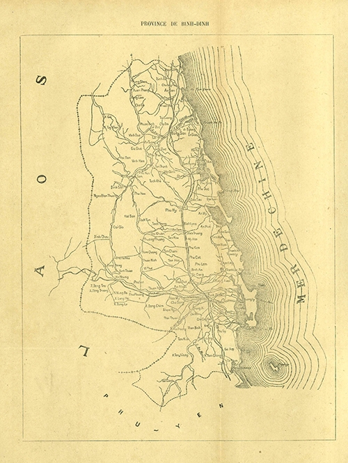 Tỉnh lỵ Quy Nhơn - Nằm cách Huế 395 cây số. Việc kết nối với các trạm trong đất liền được thực hiện thông qua một số con đường tuyệt đẹp, xe cộ đi lại được. Hàng hóa xuất khẩu qua cảng Quy Nhơn chiếm khối lượng lớn. Năm 1907, nơi đây có một trường học, một văn phòng của Hãng Vận tải đường biển, một kho tạm giữ hàng hóa của trạm Thuế quan, một nhà máy chưng cất rượu, một nhà máy sản xuất anbumin, các ruộng muối, một văn phòng Công chính, nhiều hãng buôn của người Âu, một trạm bưu điện với dịch vụ hoàn hảo.
